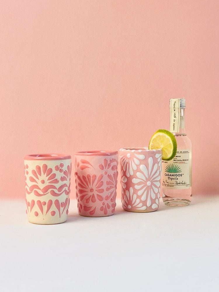 Pink Floral Paper Party Cups – 12 oz Set of 8 with Handles